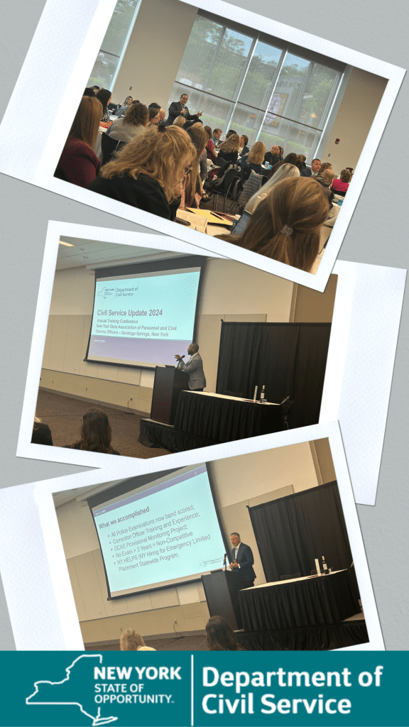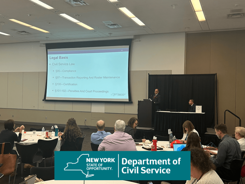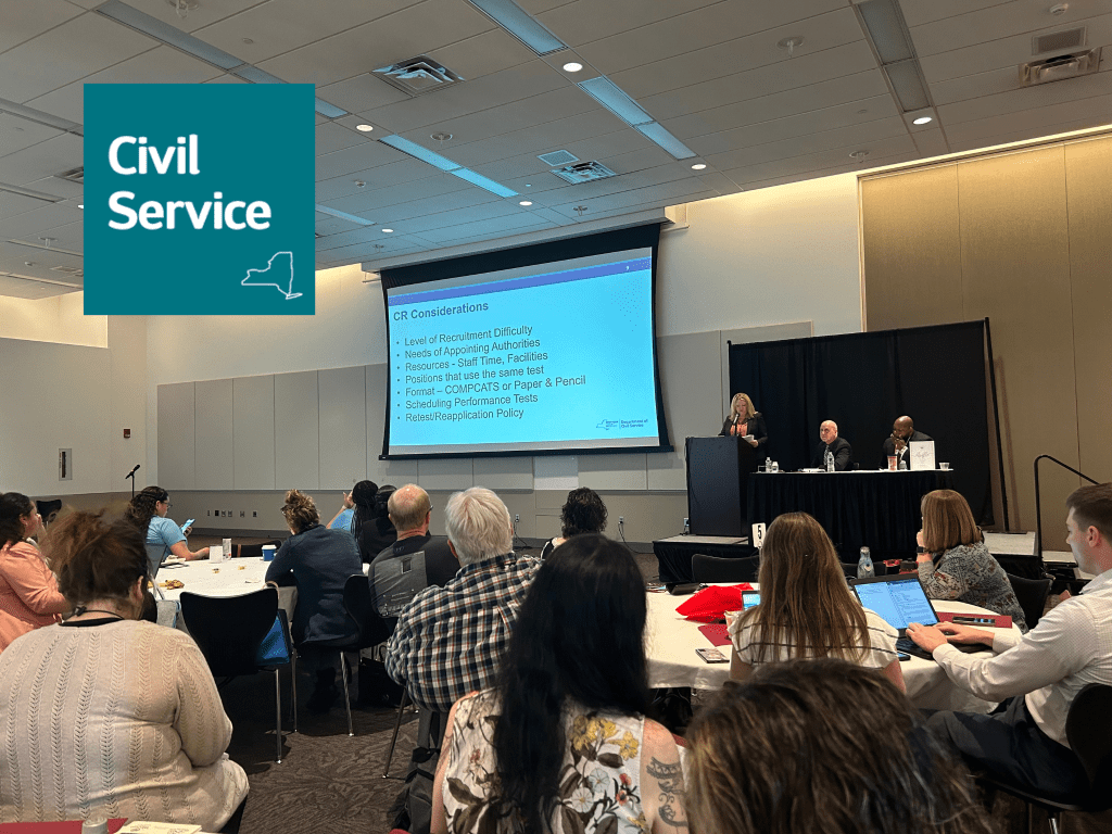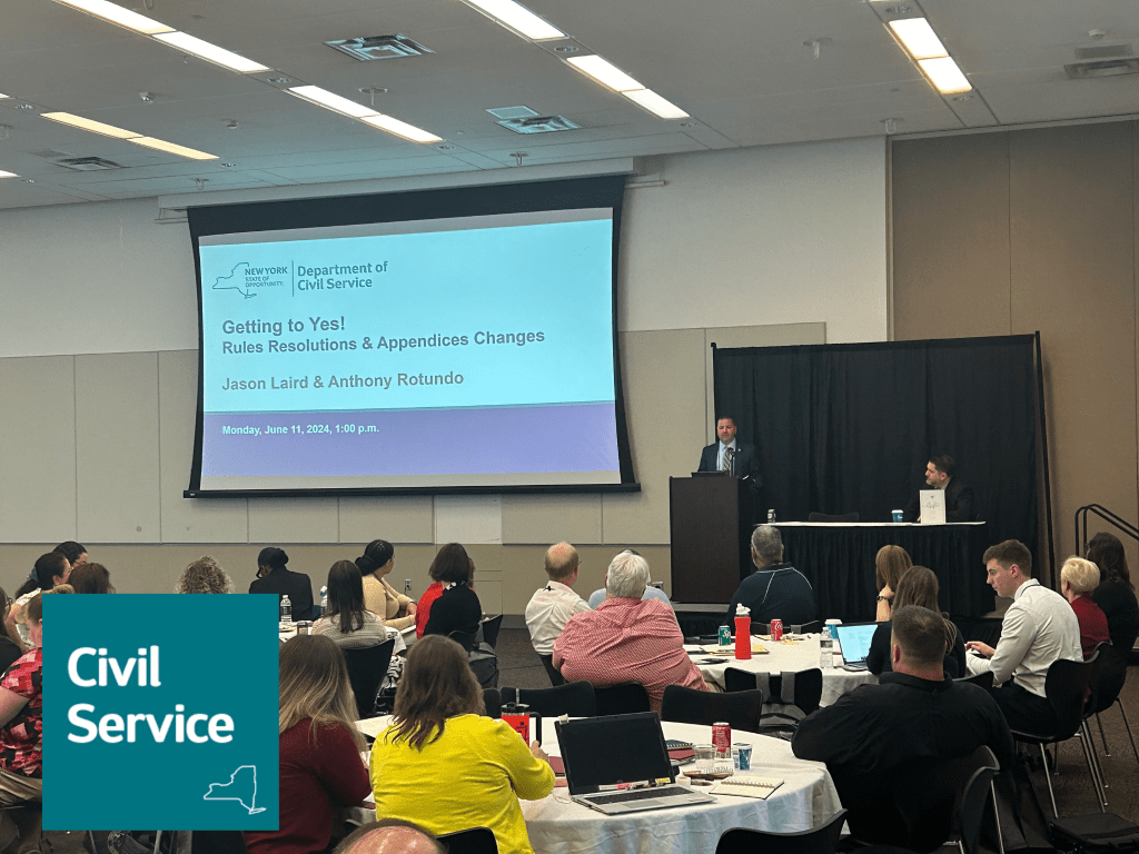 This session provided an update from the New York State Department of Civil Service on the state of civil service administration and any special projects or initiatives that occurred during the last year or are anticipated for the coming year. It was an opportunity for local civil service agencies to discuss statewide needs and priorities with staff of the New York State Department of Civil Service.