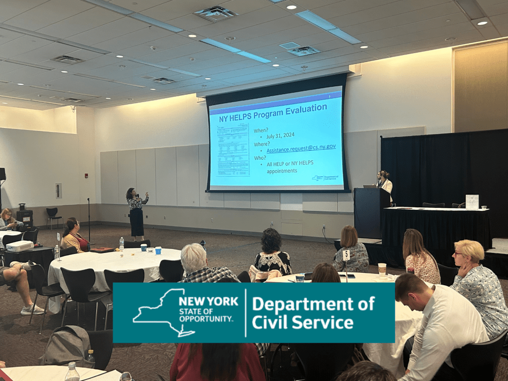 During this session, the New York State Department of Civil Service staff discussed the merit system transformation to better meet the needs of jobseekers and agencies. It was discussed the work conducted to advance the Department’s continuous-recruitment examination program and the Department’s vision for merit system recruitment and hiring in the future. This was an interactive session where participants will work in small groups to discuss merit system transformation. Each table was provided with a facilitator and notetaker and engage in discussion stemming from the recently completed stakeholder survey. The purpose of this session was to gain feedback regarding municipal merit system operations to inform the Department’s transformation initiatives. The Department wanted to engage with key stakeholders early to identify needs and ensure the transformation efforts result in programs and services that provide greater value to your agency. This was an opportunity for civil service agencies to contribute to the transformation of the merit system by expressing what they think and feel. State Civil Service wants the merit system transformation to be a positive experience for all.